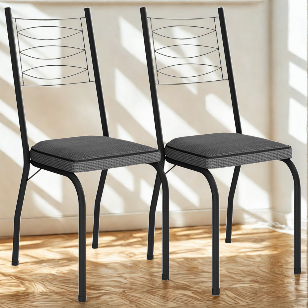Kit 2 Cadeiras Tubular Europa 262 Preto Assento Platina ARTEF