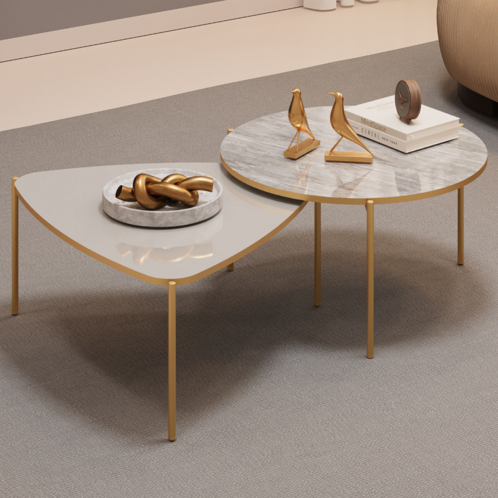 Kit 2 Mesas Centro Lina Cleia Pés Metal Bali Quartzo DJ MOVEIS
