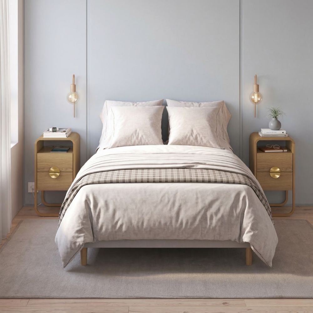 Kit com 2 Mesas de Cabeceira Luna, idealizadas a partir de formas orgânicas com cantos arredondados que se entrelaçam ao seu ambiente de repouso. Contam com estrutura em MDP de 15 mm, com acabamento BP e pés metálicos (Pintura Epóxi) com sapatas reguláveis em plástico. Possuem gavetas com corrediças telescópicas e puxadores em poliestireno estilo meia lua, além nicho superior, ambos o nicho e gaveta suportam até 2kg cada. Adicionalmente, são constituídas por cantoneiras em MDF. Produto será entregue em 02 volumes.