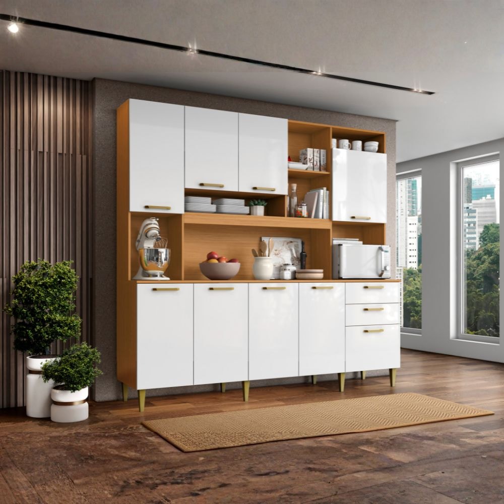 Kit Cozinha 9 Portas Mega 208 cm Cinamomo Branco ARMoveis
