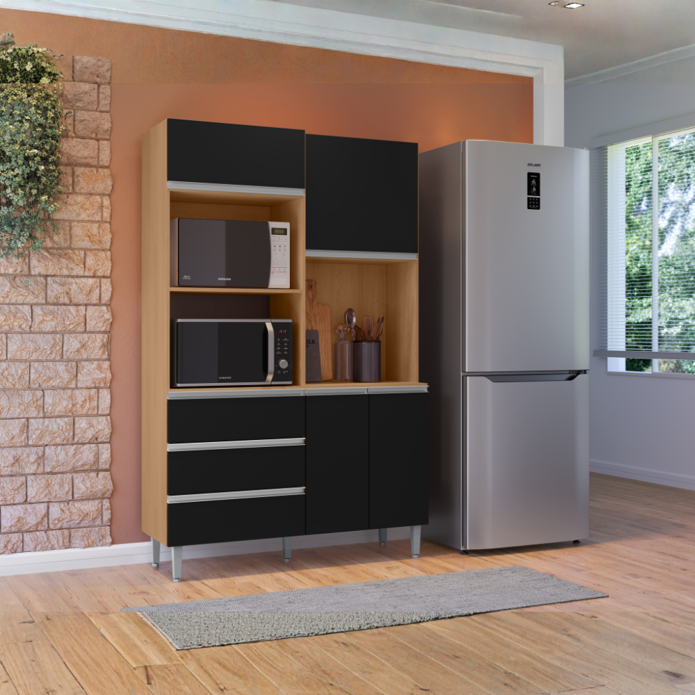 Kit Cozinha Compacta 4 Portas 180 cm Livia Amendoa Preto REAJL
