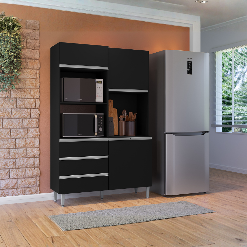 Kit Cozinha Compacta 4 Portas 180 cm Livia Preto REAJL