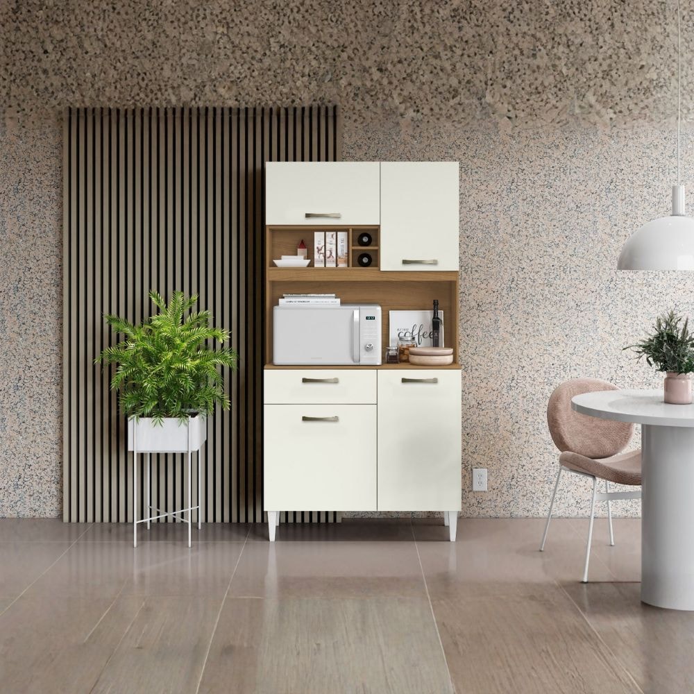Kit Cozinha Compacta 4 Portas Malva Roma 91 cm Atacama Off White ARMoveis