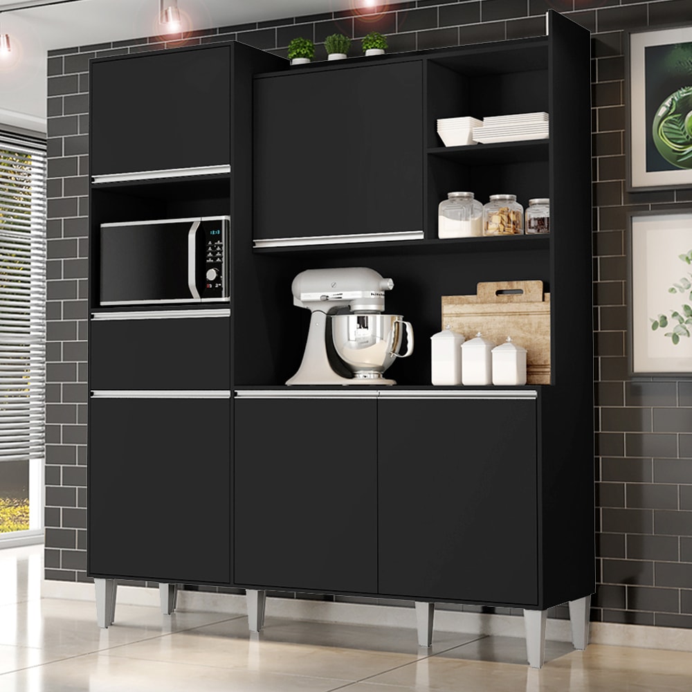 Kit Cozinha Compacta 5 Portas 160 cm Isabel Preto REAJL Moveis