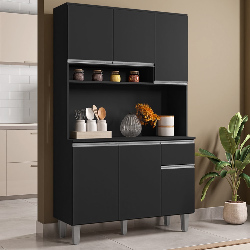 Kit Cozinha Compacta 6 Portas 105 cm Marcia Preto REAJL Moveis