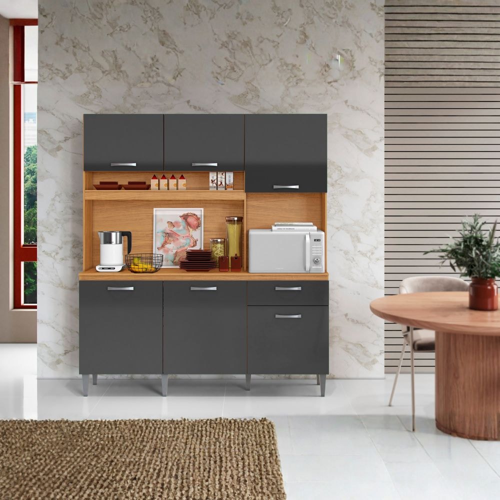 Kit Cozinha Compacta 6 Portas Siena 160 cm Cinamomo Grafite ARMoveis