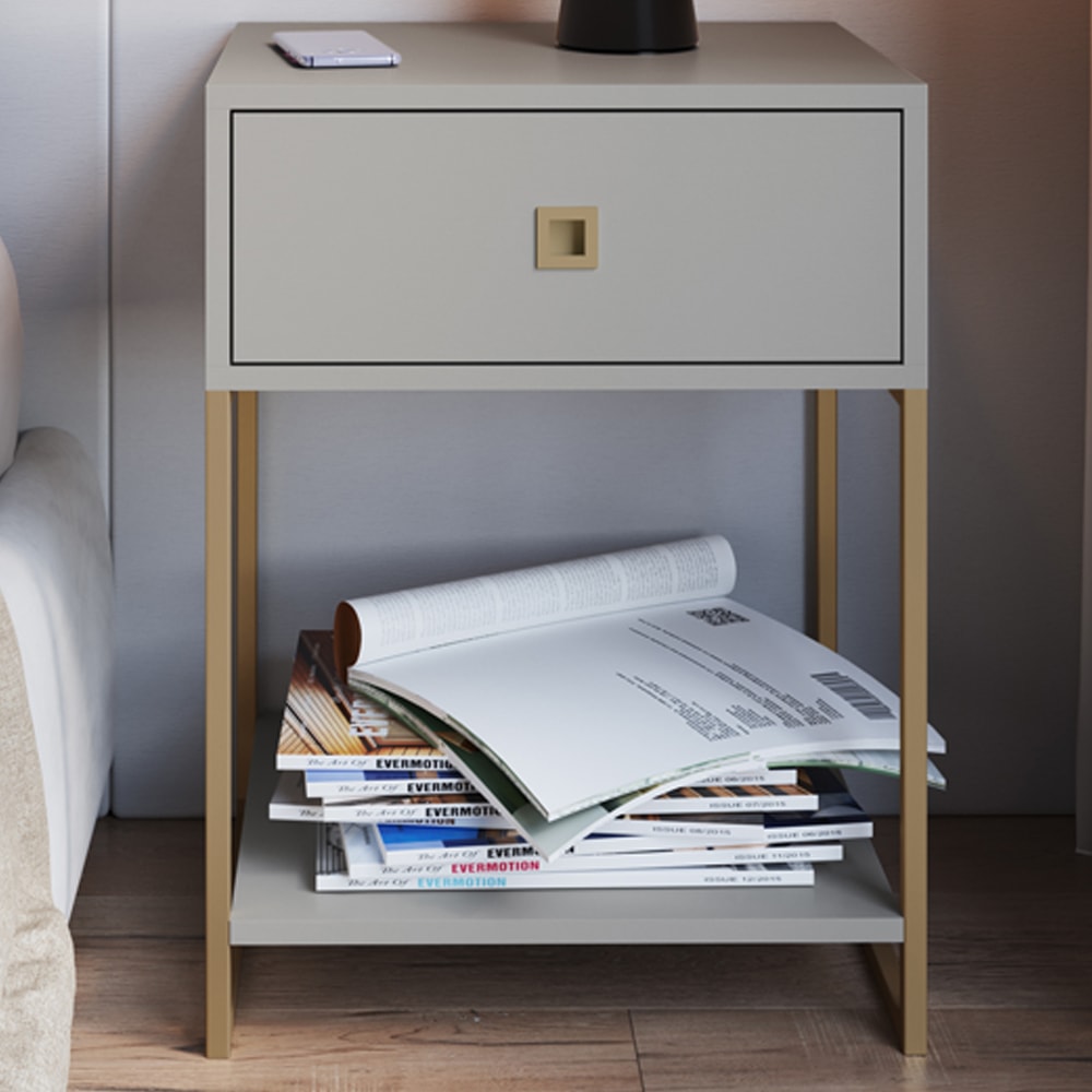 Mesa De Cabeceira P1026, com design em alta e o espaço que você necessita ao lado de sua cama. Estrutura MDP de 15 mm e pés/base em metal (pintura epóxi). Composto por gaveta com puxador embutido e corrediças metálicas, além de uma prateleira inferior. Sua base com ponteiras em plástico para evitar o atrito do móvel com o piso, perfeito para agregar aconchego e praticidade à seu quarto. Produto será entregue em 01 volume.