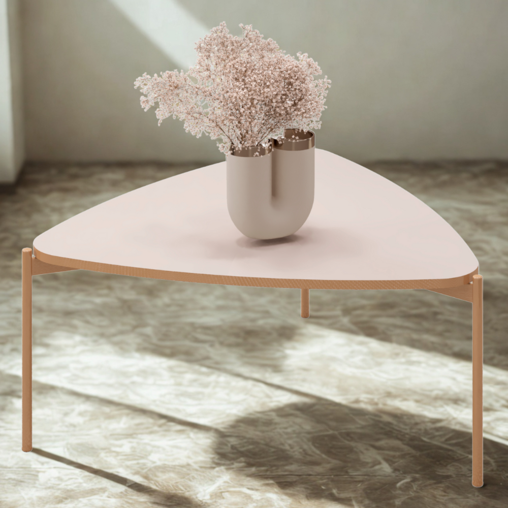 Mesa de Centro Lina, design clean e atual, perfeito para complementar seu espaço. Estrutura em MDF com acabamento em pintura UV texturizada (bordas em pintura PU). Possui tampo usinado no formato triangular, cantos arredondados e pés metálicos em formato cilíndrico. Este produto será entregue em 2 volumes.