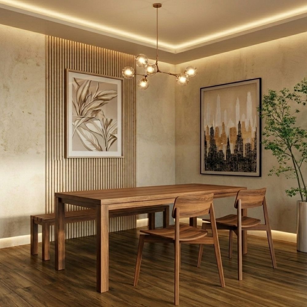 Conjunto de Jantar Nature, completo e perfeito para compor sua sala com harmonia e um toque rústico aconchegante. Desenvolvidos por Designer, suas estruturas são 100% em Madeira Maciça Taeda (presença calorosa, toque orgânico) com acabamento em pintura brilho 5% e textura escovado (toque rústico que encontra o chique). Composto por mesa de jantar e banco com tampo e pés retos reforçados, ambos com 40 mm de espessura. As cadeiras contam com estilo ergonômico, bordas curvas, pés reforçados e assento com capacidade de 120 kg cada. Conceito rústico e moderno, ideal para salas e áreas gourmet. Produtos serão entregues em 04 volumes.