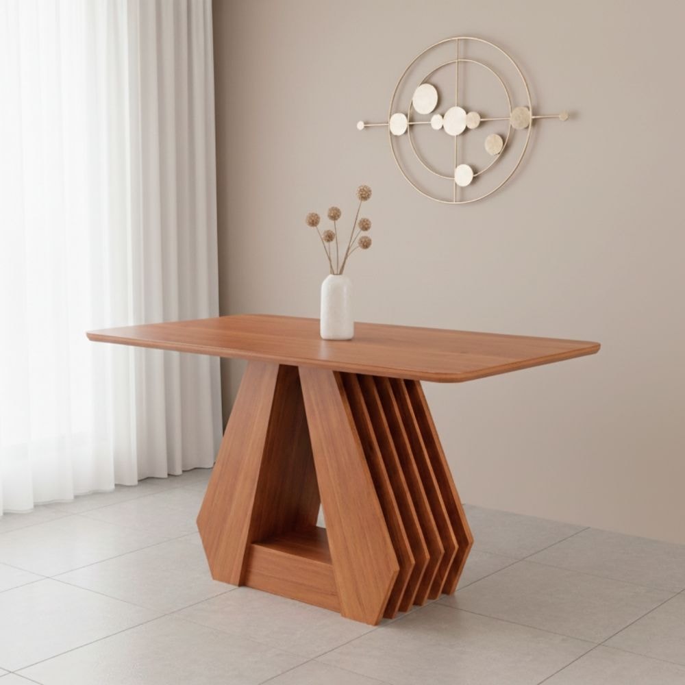 Mesa de Jantar Ágata, ideal para integrar elegância, funcionalidade e sofisticação que elevam ambientes. Possui estrutura 100% MDF de 15 e 25 mm, com pintura UV. Inclui tampo em MDF 25 mm com acabamento Laca (NÃO ACOMPANHA VIDRO) e bordas chanfradas (suportando até 40kg distribuídos). Além de base com design triangular, detalhes ripados e sistema de fixação oculto. Modelo retangular ideal para até 4 lugares (cadeiras não inclusas). Produto será entregue em 02 volumes.