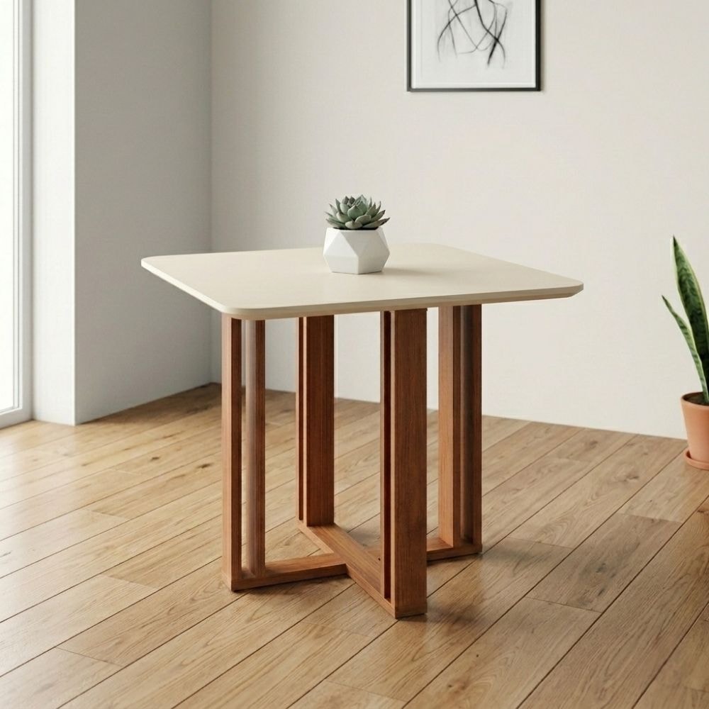 Mesa de Jantar 4 Lugares Tampo MDF 94x94 cm 15171 Cinamomo Off White MOLCI