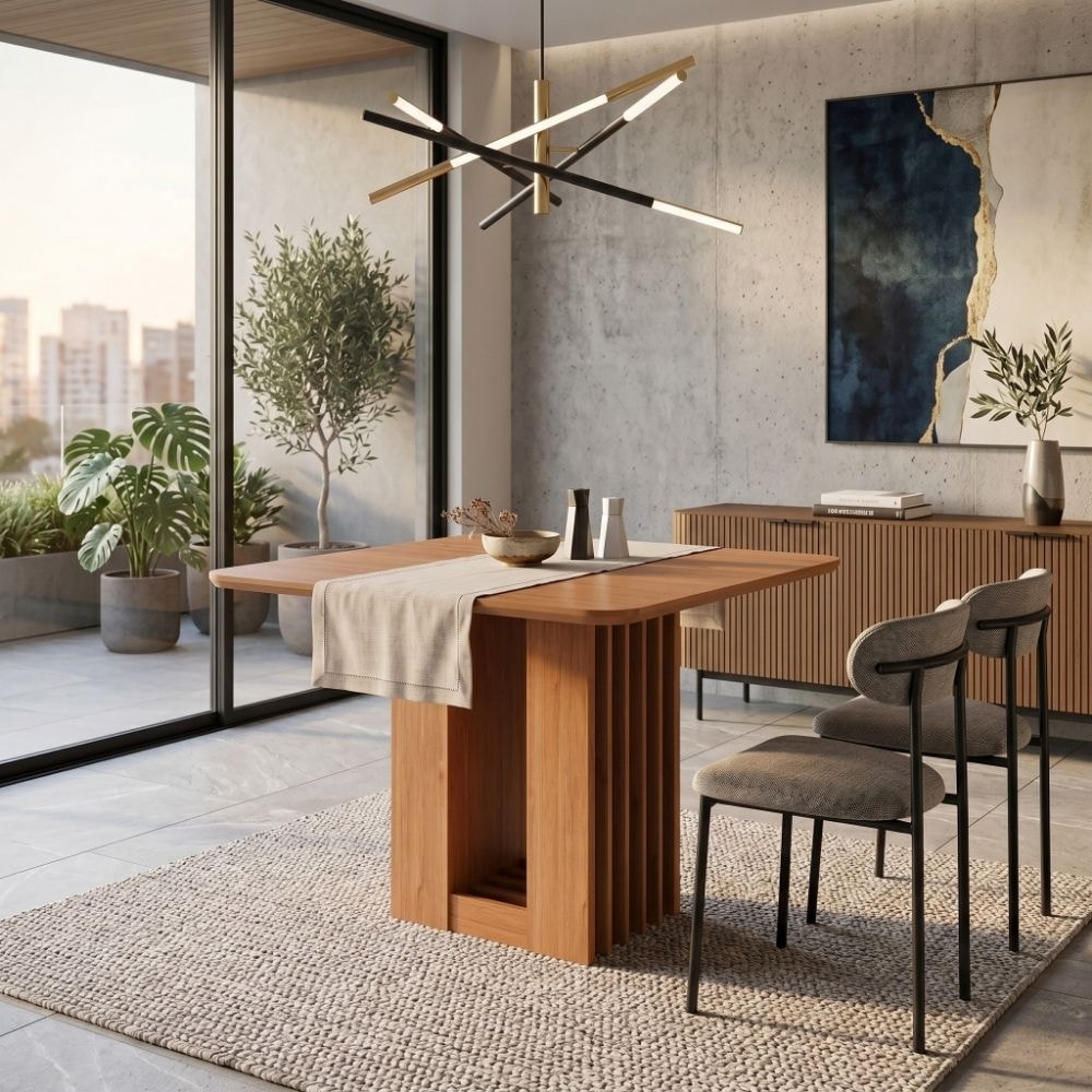 Mesa de Jantar Ariela, Combina modernidade e funcionalidade que transformam sua sala de jantar. Possui estrutura 100% em MDF de 15 e 25 mm. Conta com tampo em MDF de 25 mm (NÃO ACOMPANHA VIDRO) com acabamento Laca, pintura UV e bordas chanfradas (suportando até 40kg distribuídos no tampo). Além de base retangular em MDF de 15 mm com detalhes ripado e sistema de fixação oculto. Modelo quadrado ideal para até 4 lugares (cadeiras não inclusas). Produto será entregue em 02 volumes.