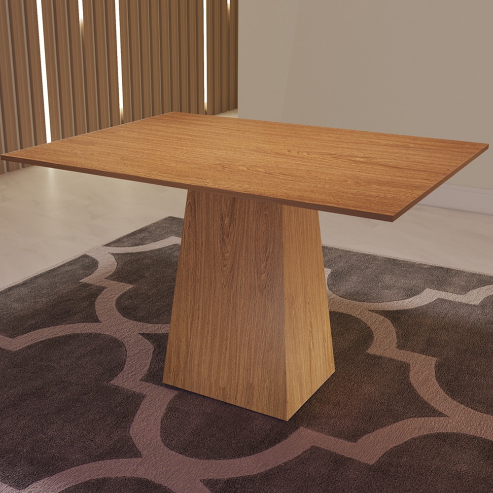 Com design moderno a Mesa de Jantar MJ01 é perfeita para transformar sua sala de jantar. Produzida com estrutura 100% MDF 15 mm e acabamento em verniz fosco. Suporta até 40 kg (tampo) agregando conforto e segurança, ideal para acomodar até 4 cadeiras (não inclusas). Base integrada (trapezoidal/Pirâmide) que reforça o estilo moderno da peça. NÃO ACOMPANHA OBJETOS NEM DEMAIS DECORAÇÕES. Este produto será entregue em 1 volume.