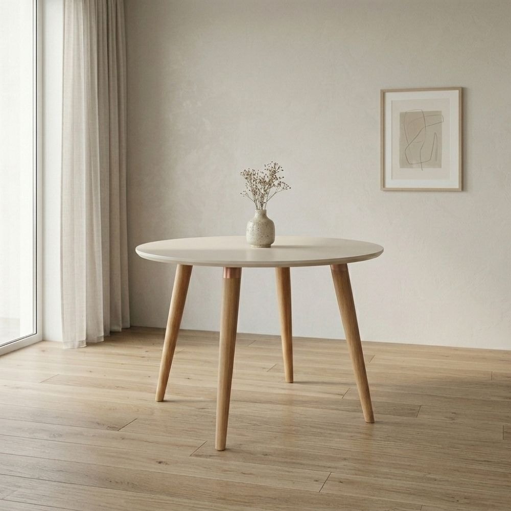 Mesa de Jantar Redonda Dani, a combinação perfeita entre design moderno, presença elegante e funcionalidade para o seu dia a dia. Possui tampo em MDF de 25 mm (NÃO ACOMPANHA VIDRO) com acabamento Laca e pintura UV, com bordas chanfradas (suportando até 40kg distribuídos). Além de pés torneados estilo retrô em Madeira Maciça Tauari (73 mm espessura) com acabamento em Verniz. Modelo redondo ideal para até 4 lugares (cadeiras não inclusas). Produto será entregue em 02 volumes.