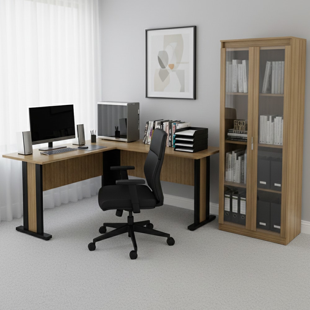 O conjunto Mesa Escrivaninha Armário Multiuso ME4195XAM3111 alia modernidade e elegância trazendo praticidade para seu dia dia, sendo fabricado com estrutura em madeira MDP de 15 mm, tampo em MDP de 25 mm e revestimento em material BP, com acabamento traseiro no mesmo padrão de cor e material, a Mesa Escrivaninha conta com pés em madeira MDP de 25 mm e sapatas reguláveis, suportando até 15 kg assim contribuindo para um ambiente de trabalho mais organizado e eficiente, o Armário Multiuso conta com duas portas de vidro, puxadores cromados, dobradiças metálicas, sapatas e 04 prateleiras que suportam até 4 kg cada, além de amplo espaço interno perfeito para organizar seu ambiente. NÃO ACOMPANHA CADEIRA NEM DEMAIS DECORAÇÕES. Este produto será entregue em 2 volumes.
