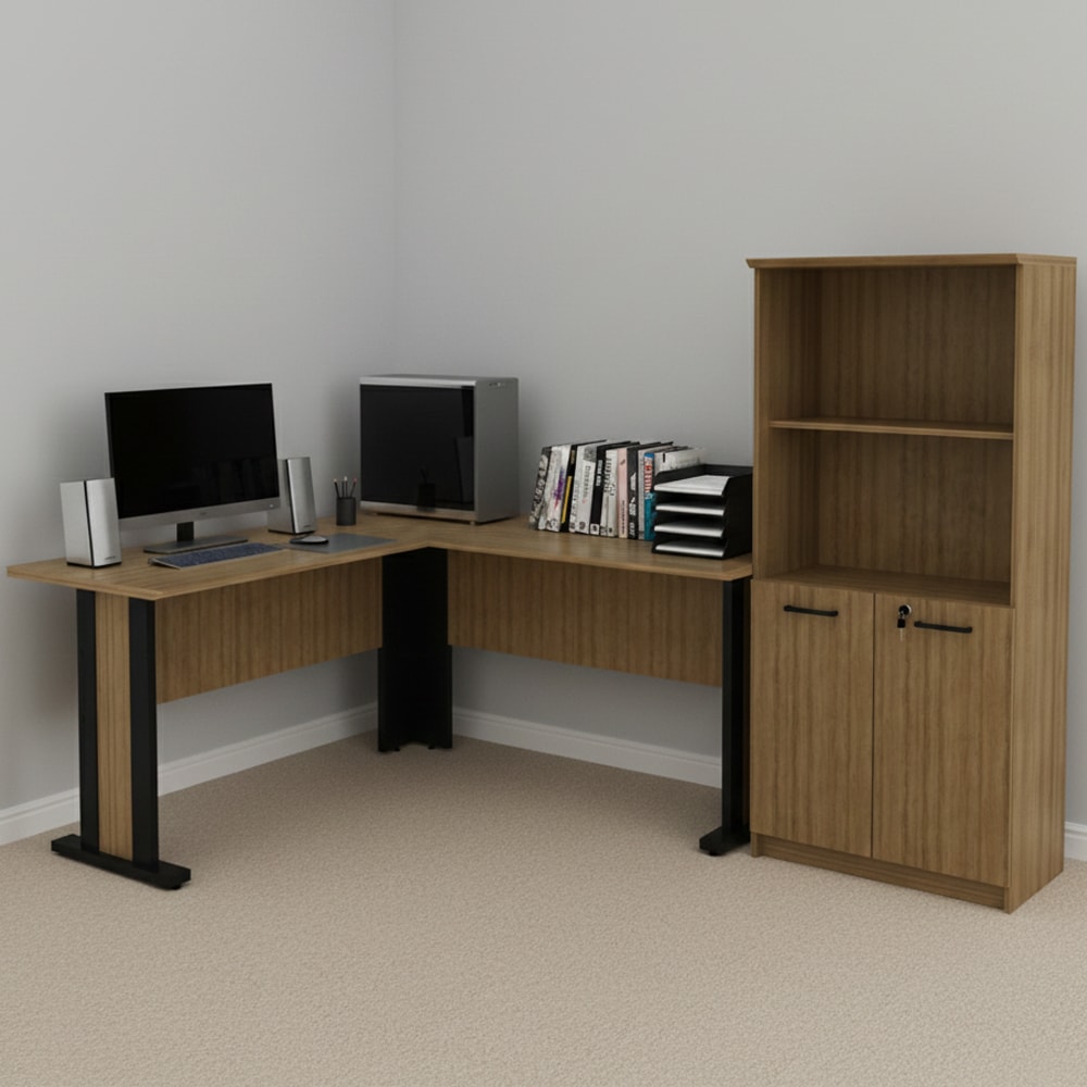 O conjunto ME4195XME4199 é perfeito para deixar seu ambiente mais elegante e organizado, sendo fabricado com estrutura em madeira MDP de 15 mm, tampo em MDP de 25 mm e revestimento em material BP, com acabamento traseiro no mesmo padrão de cor e material, a Mesa Escrivaninha ME4195 conta com pés em madeira MDP de 25 mm e sapatas reguláveis, suportando até 15 kg assim contribuindo para um ambiente de trabalho mais organizado e eficiente, já o Armário Para Escritório ME4199 conta com duas portas (sendo uma delas com trava por chave), puxadores em metal, dobradiças metálicas, além de 3 prateleiras que suportam até 12 kg cada. além de amplo espaço interno que ajuda a manter o ambiente organizado. NÃO ACOMPANHA CADEIRA NEM DEMAIS DECORAÇÕES. Este produto será entregue em 2 volumes.