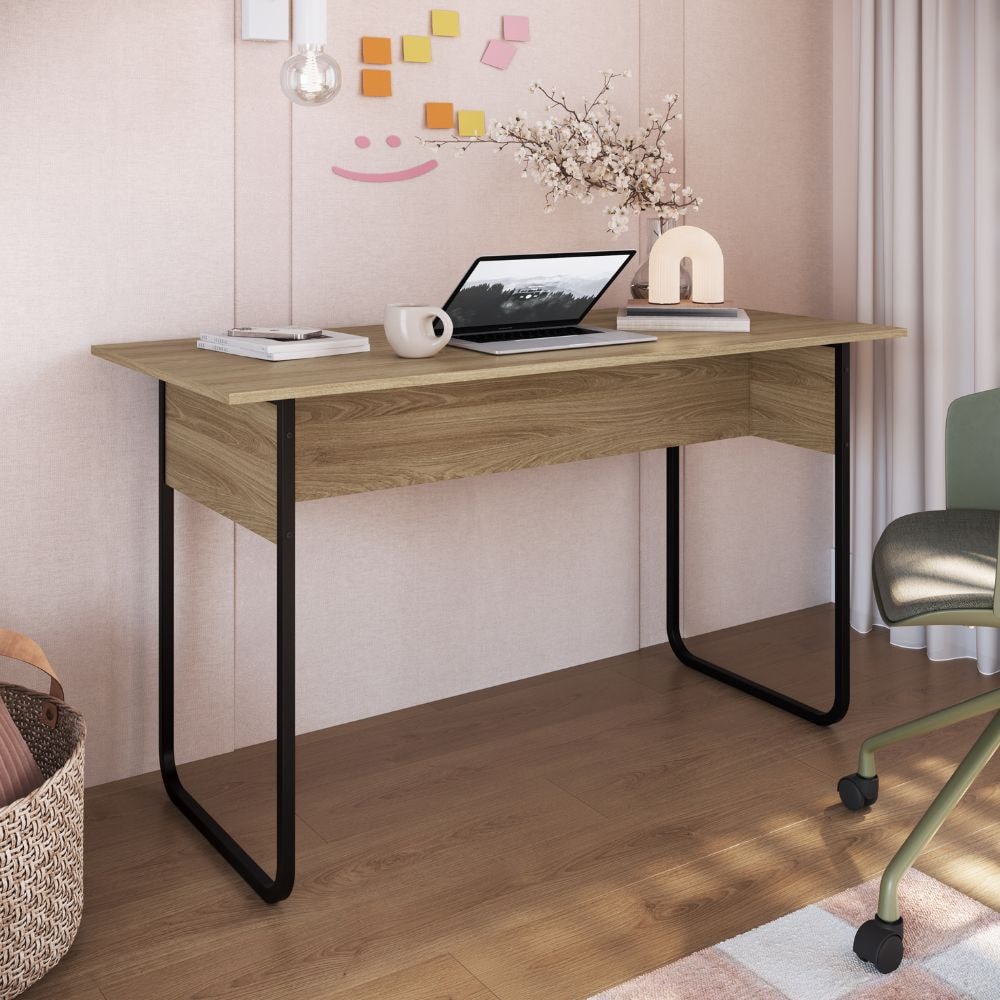 Mesa Escrivaninha Office P1070, prática, moderna e ideal para acomodar computadores, livros e decorações para trabalho ou estudo. Conta com estrutura em metal de 20 mm (pintura epóxi) e tampo em MDP 15 mm (acabamento FF - Finish Foil). Produto será entregue em 01 volume.