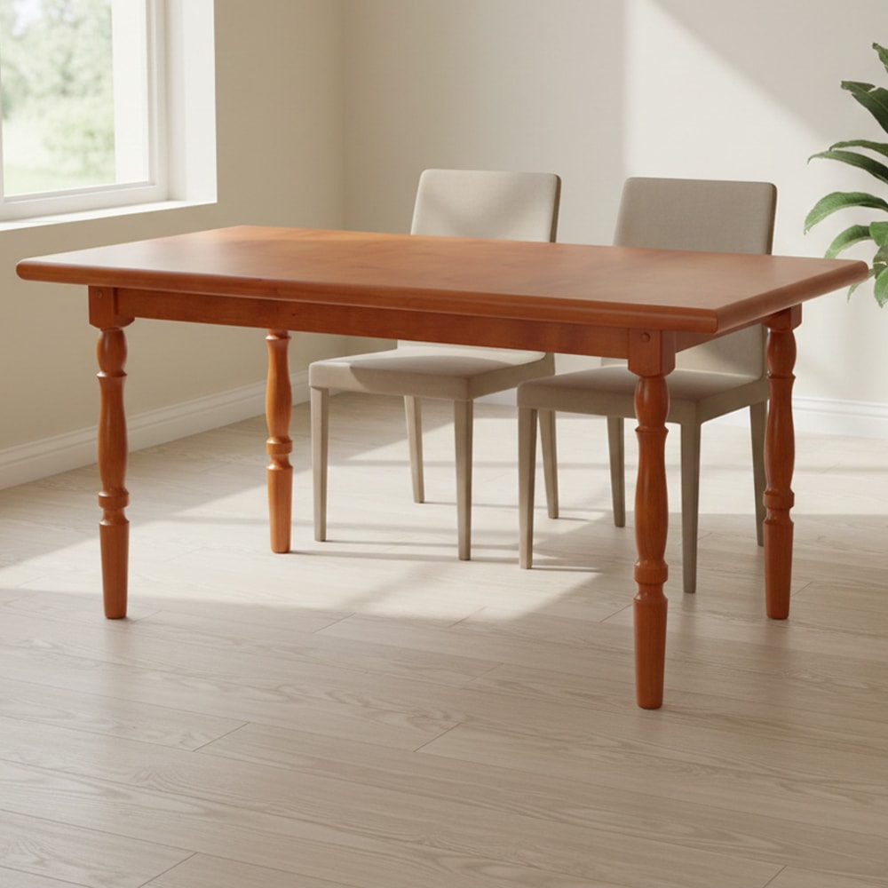 Clássica e prática, a Mesa 102LB é a escolha ideal para o dia a dia. Possui estrutura e pés em madeira maciça (eucalipto), tampo em MDP laminado revestido com lâmina de madeira, com espessura de 2,3 cm e bordas de 3 cm, além de acabamento em verniz brilho. Acomoda até 6 cadeiras (não inclusas) e suporta até 50 kg no tampo. O grande destaque fica por conta dos pés torneados de 6,2 cm, que valorizam ainda mais o design da peça. NÃO ACOMPANHA CADEIRAS NEM DEMAIS DECORAÇÕES. Este produto será entregue em 2 volumes.