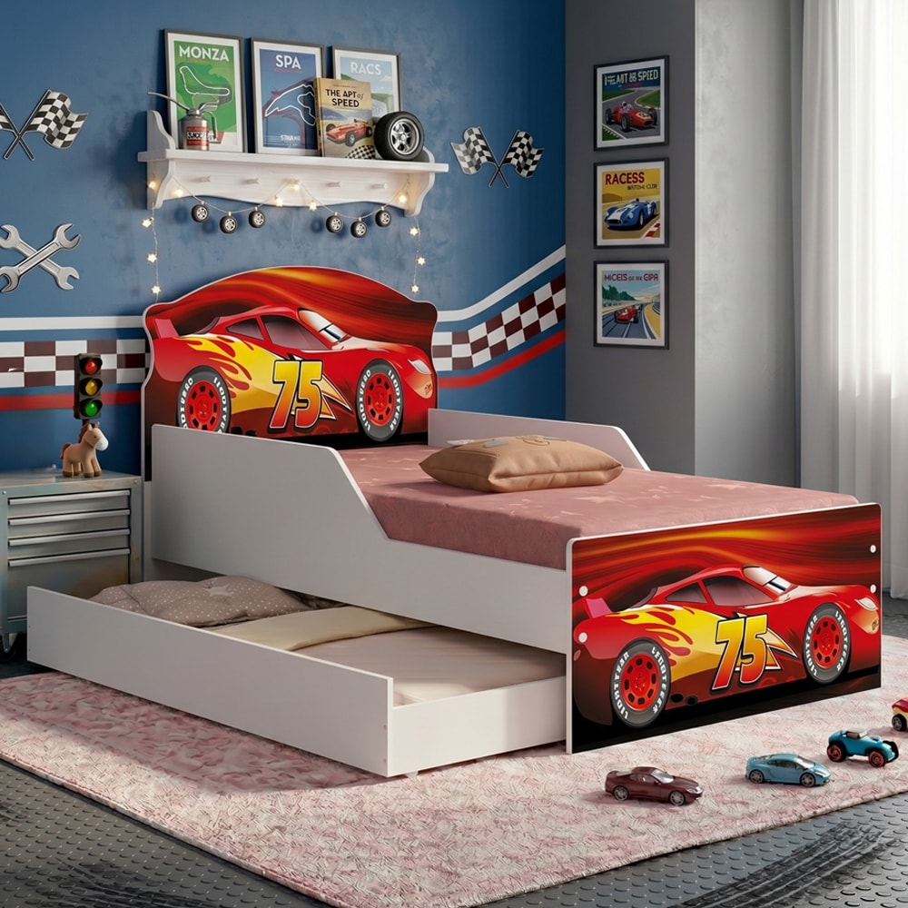 Mini Cama Livia com Cama Auxiliar, conduzindo os pequenos a um descanso repleto de magia e aventura! Compostas por Estrutura 100% MDF e acabamento em Verniz Brilho. A Cama conta com bordas arredondadas para maior segurança, grades de proteção e acabamento externo em Adesivo Temático anti risco. Enquanto a Auxiliar possui estrados reforçados e rodízios, e seu destaque fica pela sua dupla funcionalidade, podendo se transformar em uma incrível sapateira. Ambas as camas são ideais e indicadas para colchões tamanho mini cama de 150X70 cm (COLCHÃO NÃO INCLUSO) e suportam até 40 kg distribuídos sem impacto. Este produto será entregue em 3 volumes.