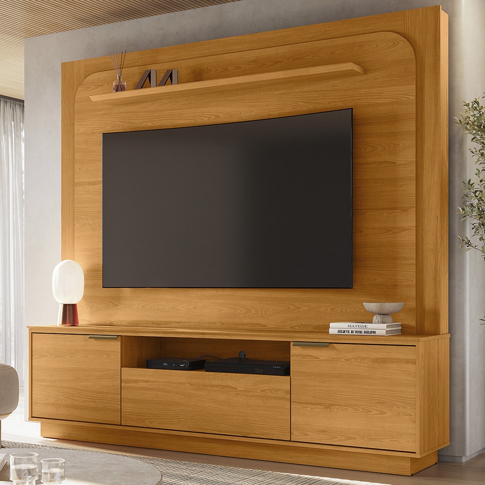 Painel Home Theater Nilo Para Tv 75 Pol 2 Portas 200 cm Cinamomo Madetec