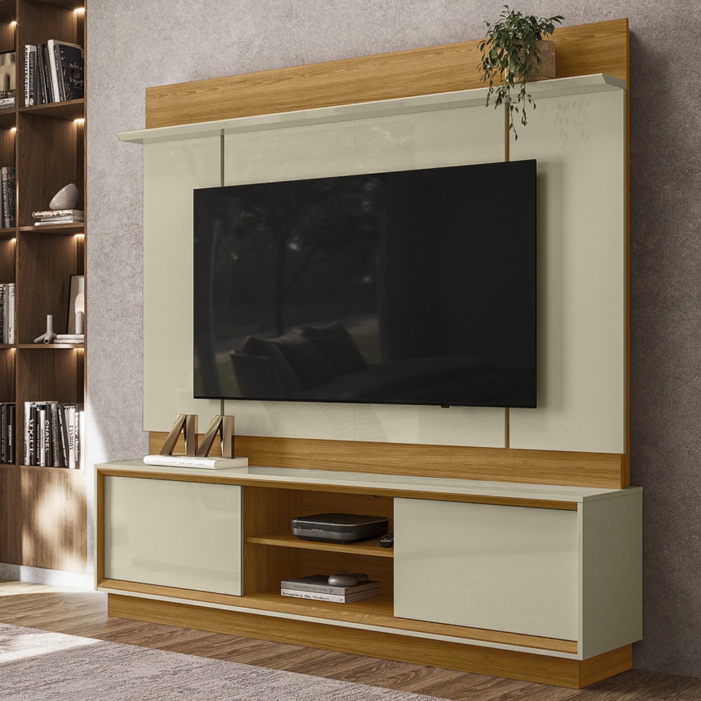 Painel Home Theater Siena Para Tv 75 Pol 2 Portas 184 cm Cumaru Opala Madetec