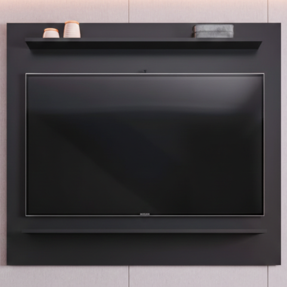 Painel Suspenso Tessa, modelo minimalista desenvolvido pra compor salas compactas com o estilo clean! Estrutura em MDP de 15 mm com acabamento BP. Suporta TVs de até 50 polegadas com segurança, conta com prateleira superior e inferior (suportando até 2kg distribuídos cada) para acomodar objetos de decorações e demais aparelhos e passa fios interno garantindo um visual limpo. Produto será entregue em 01 volume.