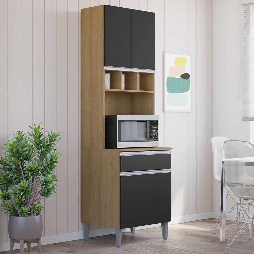 Paneleiro Microondas 202X61cm Andreia Amendoa Preto REAJL Moveis