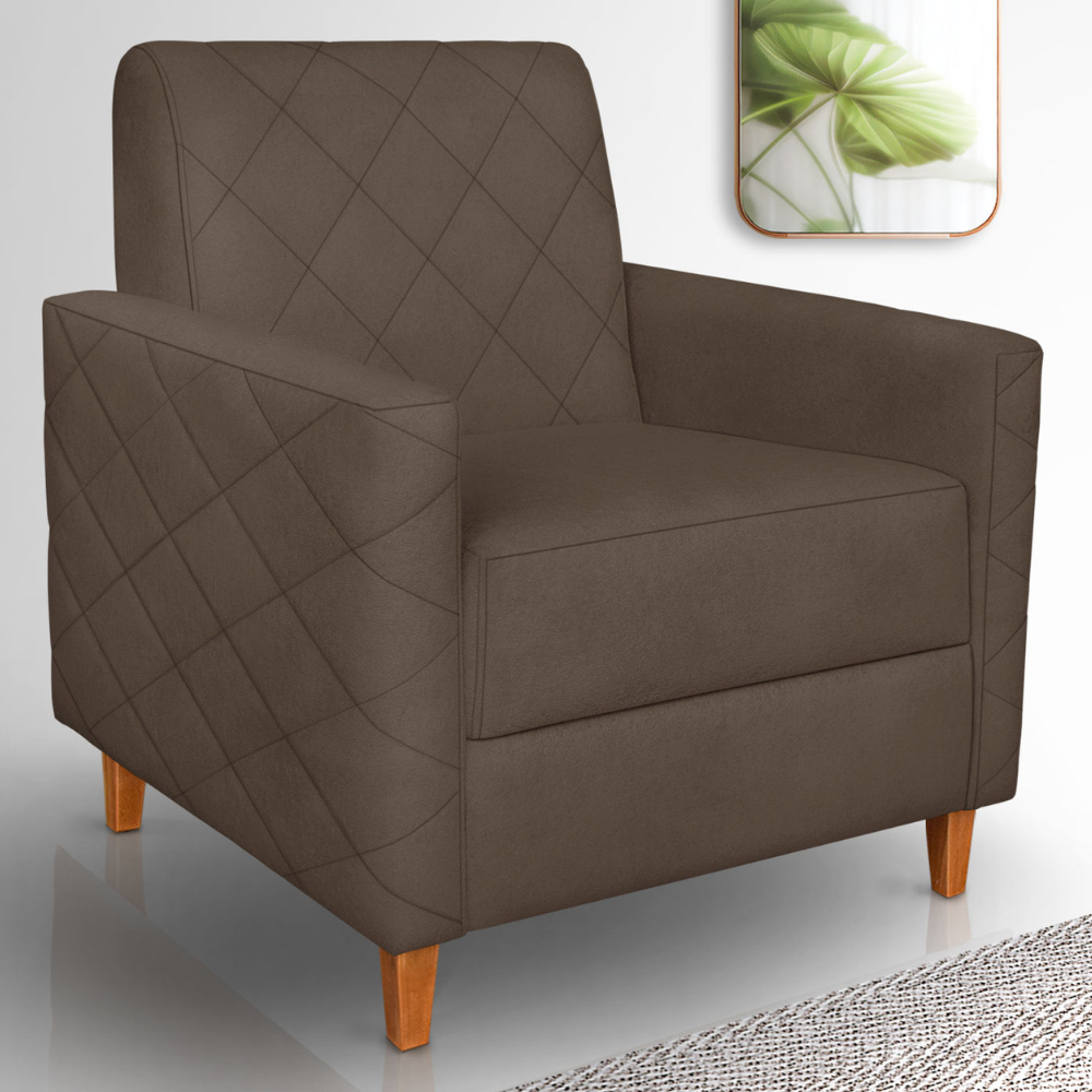 Poltrona Decorativa Paris com design discreto, adequada para diferentes ambientes. Composta por estrutura em Madeira Maciça reforçada com persistas elásticas. Estofada com espuma D26 (base, encosto e braços) e espuma HR28 com plumante de silicone (no assento) garantindo maciez e sustentação. Revestida em tecido de Veludo, (macio e aveludado) com detalhes em costura bordada. Acompanha também pés em madeira maciça (10 cm), encosto removível e assento fixo. Produto será entregue em 01 volume.