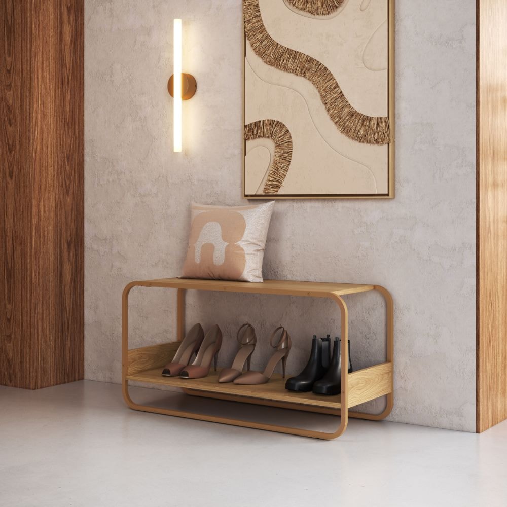Sapateira Banco Luna, inspirada em formas orgânicas com cantos arredondados que se integram com naturalidade aos mais diversos ambientes. Estrutura em MDP de 15 mm com acabamento BP e pés metálicos (Pintura Epóxi). Conta com um espaço dedicado ao assento, provendo mais praticidade a sua rotina, acomoda até 4 pares de calçados em sua prateleira inferior e contém sapatas reguláveis em plástico. Produto será entregue em 01 volume.