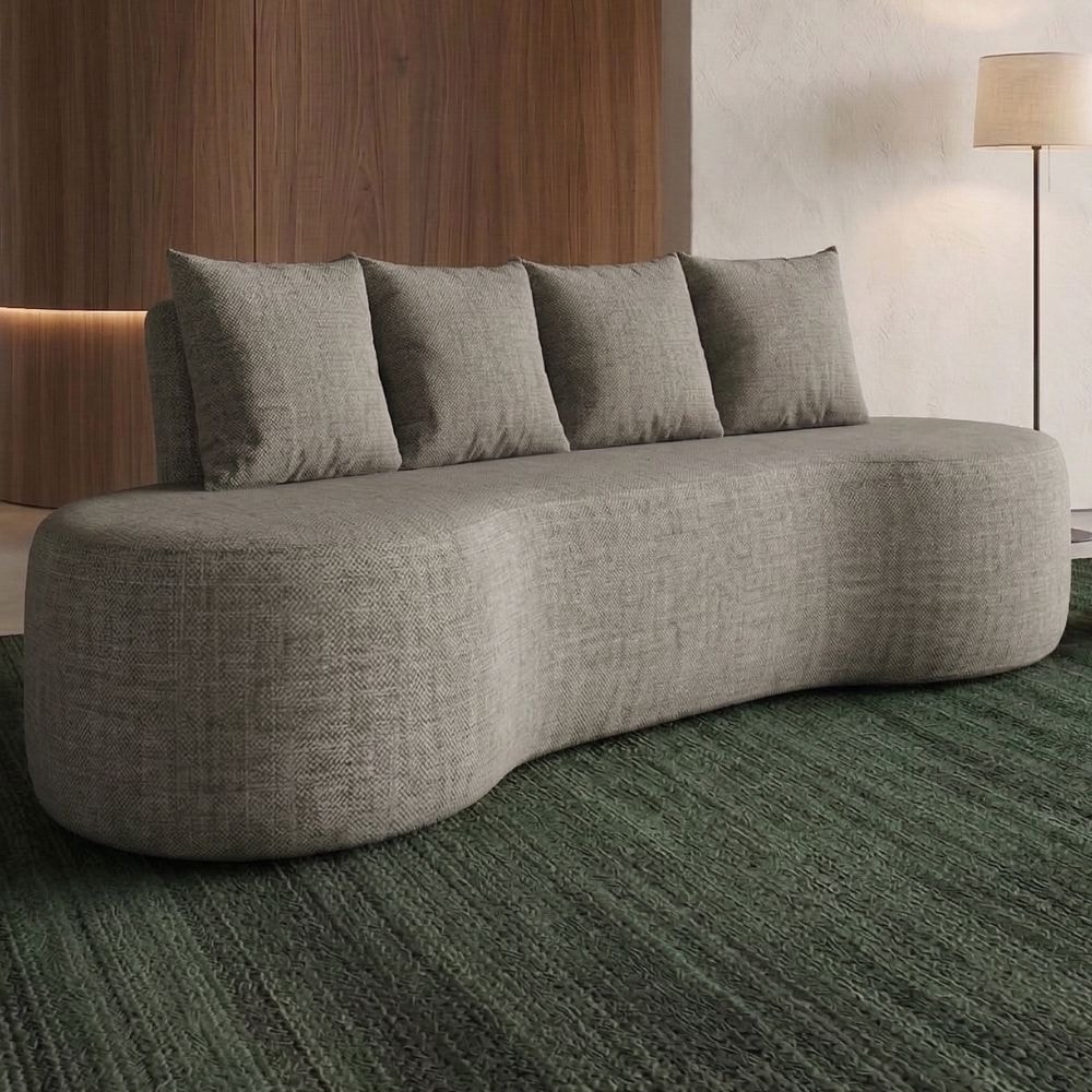 Sofá Ibiza, ideal para compor ambientes modernos com personalidade e estilo orgânico! Com estrutura em Madeira Maciça Eucalipto (reflorestada) e reforçada com percintas elásticas. Estofado em espuma HR-26 (assento e encosto), revestido em tecido Linho (material com textura leve e agradável) e 4 almofadas soltas com enchimento em fibra de silicone. Suporta até 130 kg por assento. Demais decorações não inclusas! Produto será entregue em 1 volume.