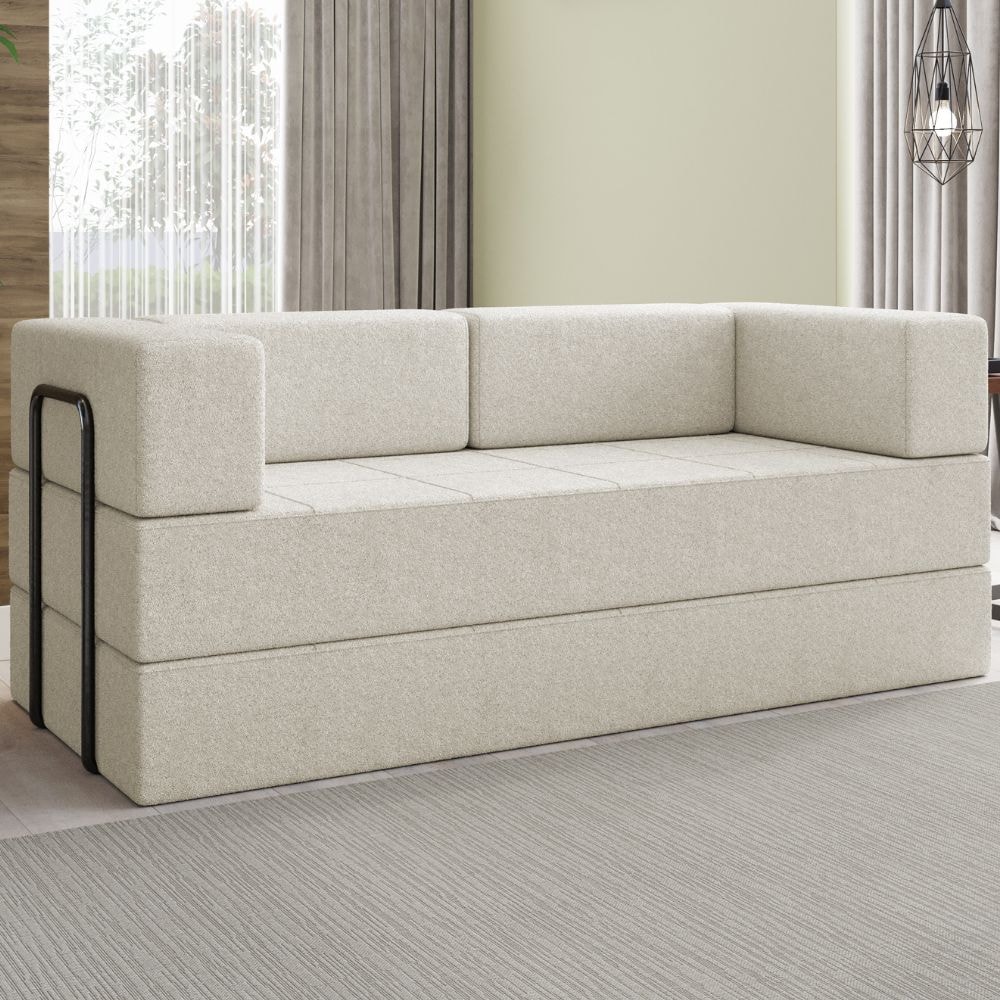 Sofá Cama Modular Mônaco, a solução versátil e elegante para qualquer ambiente! Estrutura 100% em espuma D-Plus com pés/base em  Ferro com pintura epóxi (acabamento eletrostática). Revestida em tecido Bouclê (toque macio, conforto e durabilidade). Com Design flex e múltiplas opções de montagem, esse modelo apresenta braços e encosto de linhas retas e aberto transforma-se em uma cama com 140 cm de comprimento. Suporta até 120 kg (por assento). Produto será entregue em 1 volume.
