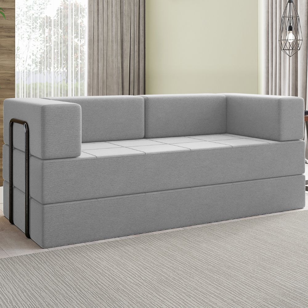 Sofa Cama Modular 2 Lugares 180 cm Monaco Linho Cinza VConcept