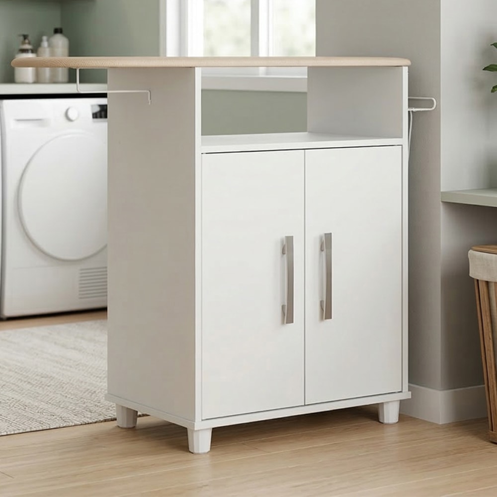 Tábua de Passar B04, versátil e prática para adaptar-se a sua rotina! Composta por Estrutura MDP de 15 mm e acabamento UV fosco. Modelo multifuncional, possui porta com dobradiças plásticas, nicho funcional superior e amplo espaço interno com prateleira para armazenamento. Destaque para tábua de passar (MDP 15 mm) já embutida, revestida em tecido poliéster, além de pés e puxadores em plástico. Pensado para acompanhar sua rotina com praticidade. NÃO ACOMPANHA OBJETOS NEM DEMAIS DECORAÇÕES. Este produto será entregue em 1 volume.