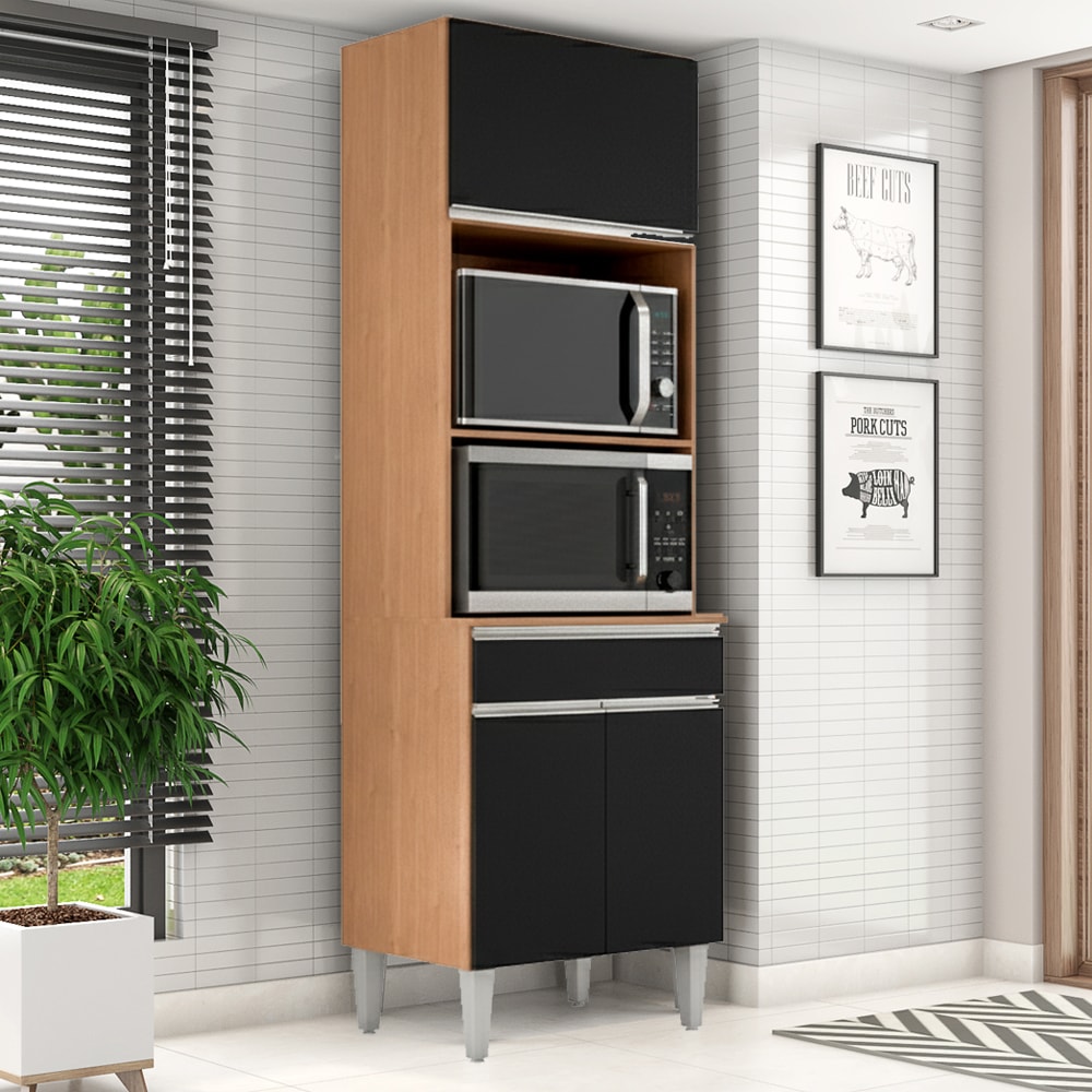 Torre Quente Para Forno E Microondas 202X61cm Andreia Amendoa Preto REAJL Moveis